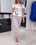 SPECYFIKACJE: Rodzaj Bluzki: T-shirt Styl: Nieformalny Materiał: Bawełna z domieszką Okazja: Na co dzień Dekolt: Okrągły dekolt Wzór: Nadruk/Wzór Sleeve Type: Rękaw standardowy Długość rękawa: Krótki rękaw Typ sylwetki: Regularny Pora roku: Wiosna, Lato Paczka zawiera: 1 x T-Shirt TABELA ROZMIARÓW (cm) Rozmiar Biust Długość S 95 65 M 100...