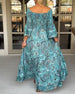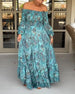 SPECYFIKACJA: Styl: Elegancki Materiał: 5% Spandex, 95% Poliester Rodzaj Sukienki: Trapezowa Długość Sukienki: Maxi Dekolt: Carmen Wzór: Nadruk/Wzór Rodzaj rękawa: Rękaw rozkloszowany Długość rękawa: 7/8 Detale: Marszczona Typ sylwetki: Regularny Pora roku: Wiosna, Lato Okazja: Na co dzień Paczka zawiera: 1 x Sukienka TABELA ROZMIARÓW (cm)...