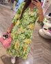 SPECYFIKACJA: Styl: Nieformalny Materiał: Bawełna z domieszką Rodzaj Sukienki: Trapezowa Długość Sukienki: Midi Dekolt: Dekolt Kopertowy Wzór: Nadruk/Wzór Rodzaj rękawa: Rękaw standardowy Długość rękawa: Rękaw 3/4 Detale: Sznurowane, Guziki, Rozcięcie Typ sylwetki: Regularny Pora roku: Lato Okazja: Na co dzień, Wakacje Paczka zawiera: 1 x Suk...