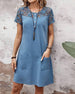 Jednokolorowa sukienka z krótkim rękawem z koronką