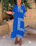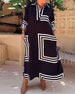 SPECYFIKACJA: Styl: Nieformalny Materiał: 5% Spandex, 95% Poliester Rodzaj Sukienki: Prosty Długość Sukienki: Midi Dekolt: W serek, Dekolt Kopertowy Wzór: W paski Rodzaj rękawa: Rękaw standardowy Długość rękawa: Rękaw 3/4 Detale: Guziki Typ sylwetki: Luźny krój Pora roku: Lato Okazja: Na co dzień Paczka zawiera: 1 x Sukienka TABELA ROZMIAR...