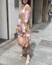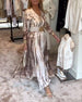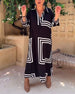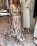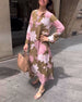 SPECYFIKACJA: Styl: Elegancki Materiał: Bawełna z domieszką Rodzaj Sukienki: Trapezowa Długość Sukienki: Maxi Dekolt: W serek Wzór: Nadruk/Wzór Rodzaj rękawa: Rękaw standardowy Długość rękawa: Długi rękaw Detale: Rozcięcie Typ sylwetki: Regularny Pora roku: Wiosna, Lato Okazja: Na co dzień Paczka zawiera: 1 x Sukienka TABELA ROZMIARÓW (cm)...