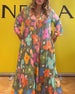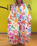 Sukienka na co dzień z kolorowym kwiatowym nadrukiem i rękawami dzwonkowymi