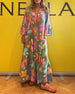 SPECYFIKACJA: Styl: Nieformalny Materiał: 3% Spandex,97% Poliester Rodzaj Sukienki: Trapezowa Długość Sukienki: Maxi Dekolt: W serek Wzór: Kwiatowy Rodzaj rękawa: Rękaw rozkloszowany Długość rękawa: Długi rękaw Detale: Patchwork, Guziki Typ sylwetki: Regularny Pora roku: Wiosna, Lato, Jesień Okazja: Na co dzień Paczka zawiera: 1 x Sukienka ...