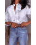 SPECYFIKACJA: Rodzaj Bluzki: Bluzki Styl: Elegancki, Biznesowy Materiał: Bawełna z domieszką Okazja: Na co dzień, Praca Dekolt: W serek Wzór: Jednolity Kolor Typ rękawa: Rękaw standardowy Długość rękawa: Długi rękaw Typ sylwetki: Regularny Pora roku: Wiosna, Lato, Jesień Detale: Kieszeń, Guziki Paczka zawiera: 1 x Bluzka TABELA ROZMIARÓW (...