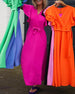Jednokolorowa długa sukienka z marszczonym rękawem