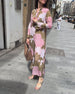 Sukienka maxi z długim rękawem i rozcięciem w kwiatowy wzór