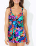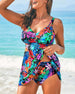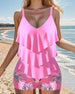 Plisowany kostium kąpielowy typu tankini z kwiatowym nadrukiem i dekoltem w serek