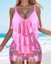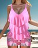 SPECYFIKACJA: Styl: Urlop Materiał: 15% Spandex, 85% Poliester Okazja: Wakacje Dekolt: Cienkie ramiączka Wzór: Wzór w liście Rodzaj koszulki: Tankini Rodzaj biustonosza: Biustonosz nieusztywniany, biustonosz miękki Rodzaj dołu: Szorty Typ sylwetki: Szczupły Pora roku: Lato Detale: Falbanka Paczka zawiera: 1 x Strój kąpielowy TABELA ROZMIAR...