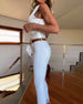 Elegancki dwuczęściowy komplet z nieregularnym nadrukiem
