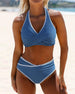 SPECYFIKACJA: Styl: Urlop Materiał: 82% Chinlon,18% Spandex Okazja: Wakacje Dekolt: Halter Wzór: Wzór geometryczny Rodzaj koszulki: Bikini Rodzaj biustonosza: Biustonosz nieusztywniany, biustonosz miękki Rodzaj dołu: Naturalny Typ sylwetki: Szczupły Pora roku: Lato Detale: Marszczona Paczka zawiera: 1 x Strój kąpielowy TABELA ROZMIARÓW (c...