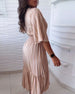 Sukienka z dekoltem w kształcie litery V i rękawami dzwonkowymi