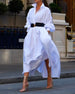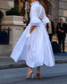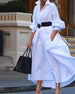 SPECYFIKACJA: Styl: Nieformalny Materiał: Bawełna z domieszką Rodzaj Sukienki: Trapezowa Długość Sukienki: Maxi Dekolt: Dekolt Kopertowy Wzór: Jednolity Kolor Rodzaj rękawa: Bufiasty rękaw Długość rękawa: Rękaw 3/4 Detale: Kieszeń, Guziki, Marszczona Typ sylwetki: Regularny Pora roku: Wiosna, Lato Okazja: Na co dzień Paczka zawiera: 1 x Sukie...