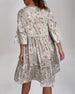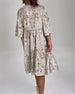 Swobodna sukienka z rękawami trzy czwarte w botaniczny wzór