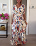 SPECYFIKACJA: Styl: Vintage Materiał: 100% Poliester Rodzaj Sukienki: Trapezowa Długość Sukienki: Maxi Dekolt: W serek Wzór: Nadruk/Wzór Rodzaj rękawa: Rękaw standardowy Długość rękawa: Długi rękaw Detale: Guziki, Rozcięcie Typ sylwetki: Regularny Pora roku: Wiosna, Lato Okazja: Na co dzień Paczka zawiera: 1 x Sukienka TABELA ROZMIARÓW (c...