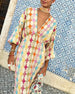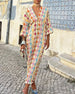 SPECYFIKACJA: Styl: Urlop, Elegancki Materiał: Bawełna z domieszką Rodzaj Sukienki: Trapezowa Długość Sukienki: Maxi Dekolt: W serek Wzór: Wzór geometryczny Rodzaj rękawa: Latarnia rękaw Długość rękawa: Rękaw 3/4 Detale: Patchwork, Z odkrytymi plecami Typ sylwetki: Luźny krój Pora roku: Wiosna, Lato, Jesień Okazja: Na co dzień, Wakacje Paczka...