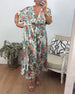 Elegancka sukienka w botaniczny wzór z dekoltem w kształcie litery V