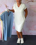 SPECYFIKACJA: Styl: Nieformalny Materiał: 70%Bawełna,30%Poliester Rodzaj Sukienki: Prosty Długość Sukienki: Do kolan Dekolt: W serek Wzór: Jednolity Kolor Rodzaj rękawa: Rękaw standardowy Długość rękawa: Krótki rękaw Detale: Kieszeń Typ sylwetki: Regularny Pora roku: Lato Okazja: Na co dzień Paczka zawiera: 1 x Sukienka TABELA ROZMIARÓW (c...