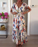 SPECYFIKACJA: Styl: Nieformalny Materiał: 100% Poliester Rodzaj Sukienki: Trapezowa Długość Sukienki: Maxi Dekolt: W serek Wzór: Kwiatowy Rodzaj rękawa: Rękaw standardowy Długość rękawa: Krótki rękaw Detale: Marszczona Typ sylwetki: Regularny Pora roku: Lato Okazja: Na co dzień Paczka zawiera: 1 x Sukienka TABELA ROZMIARÓW (cm) ...