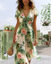 Sukienka w kwiaty z krótkim rękawem i dekoltem w kształcie litery V