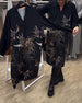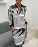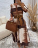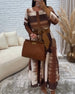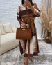 SPECYFIKACJA: Styl: Nieformalny Rodzaj Bluzki: Płaszcze Kategoria: Komplet Materiał: 95% Poliester, 5% Elastan Wzór: W paski Dekolt: W serek Rodzaj rękawa: Rękaw standardowy Długość rękawa: Długi rękaw Rodzaj spodni: Szerokie nogawki Długość spodni: Długie Typ sylwetki: Regularny Pora roku: Wiosna, Jesień Okazja: Na co dzień Paczka zawiera: 1...