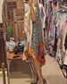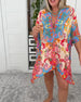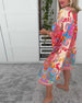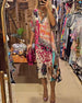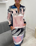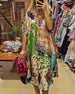 Swobodna sukienka w panterkę i kolorowy nadruk z głębokim dekoltem w kształcie litery V