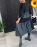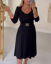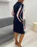 Sukienka retro kontrastowa z okrągłym dekoltem i długim rękawem