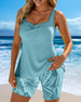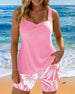 SPECYFIKACJE: Styl: Urlop Materiał: 15% Spandex,85% Poliester Okazja: Wakacje Wzór: Nadruk/Wzór Długość rękawa: Bez rękawów Rodzaj koszulki: Tankini Rodzaj biustonosza: Biustonosz nieusztywniany, biustonosz miękki Rodzaj dołu: Szorty Typ sylwetki: Szczupły Detale: Z odkrytymi plecami,Marszczona Paczka zawiera: 1 x Tankini TABELA ROZMIARÓW (cm)...