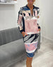 Sukienka z długim rękawem i kieszenią zapinana na suwak w bloki kolorów