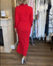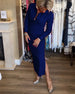 Elegancka sukienka z rozcięciem w jednolitym kolorze