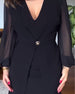 Sukienka z dekoltem w serek i rękawami typu latarnia, dopasowana