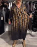 SPECYFIKACJA: Styl: Nieformalny Materiał: Bawełna z domieszką Rodzaj Sukienki: Prosty Długość Sukienki: Midi Dekolt: W serek Wzór: Nadruk/Wzór Rodzaj rękawa: Rękaw standardowy Długość rękawa: Długi rękaw Typ sylwetki: Regularny Pora roku: Jesień, Zima Okazja: Na co dzień Paczka zawiera: 1 x Sukienka TABELA ROZMIARÓW (cm) Rozmiar Biust D...