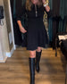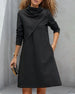 SPECYFIKACJA: Styl: Elegancki, Biznesowy Materiał: 3% Spandex, 97% Poliester Rodzaj Sukienki: Prosty Długość Sukienki: Do kolan Dekolt: Golf Wzór: Jednolity Kolor Rodzaj rękawa: Rękaw standardowy Długość rękawa: Długi rękaw Detale: Patchwork, Kieszeń Typ sylwetki: Regularny Pora roku: Wiosna, Jesień, Zima Okazja: Na co dzień, Praca Paczka zaw...