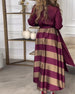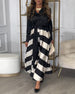 SPECYFIKACJA: Styl: Elegancki Materiał: Bawełna z domieszką Rodzaj Sukienki: Trapezowa Długość Sukienki: Maxi Dekolt: Dekolt Kopertowy Wzór: W paski Rodzaj rękawa: Rękaw standardowy Długość rękawa: Długi rękaw Detale: Obcisła, Guziki Typ sylwetki: Regularny Pora roku: Wiosna, Jesień Okazja: Na co dzień Paczka zawiera: 1 x Sukienka TABELA R...