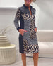 SPECYFIKACJA: Styl: Szykowny Materiał: 95% Poliester,5% Spandex Rodzaj Sukienki: Prosty Długość Sukienki: Do kolan Dekolt: Stójka Wzór: Lampart Rodzaj rękawa: Rękaw standardowy Długość rękawa: Długi rękaw Detale: Patchwork, Kieszeń, Zamek błyskawiczny Typ sylwetki: Regularny Pora roku: Jesień, Zima Okazja: Na co dzień Paczka zawiera: 1 x Suki...