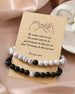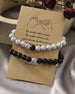 OPIS Elegancki design: Zestaw bransoletek charakteryzuje się harmonijnym połączeniem białych i matowych czarnych koralików kamiennych, tworząc uderzający kontrast, który jest zarówno nowoczesny, jak i ponadczasowy. Naturalne elementy: Wykonane z naturalnych kamieni, białe koraliki kamienne oferują wyjątkową fakturę i subtelne marmurkowanie, pod...