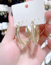 SPECYFIKACJA Okrągłe Kolczyki Materiał: stop/posrebrzane/pozłacane, srebrna igła 925 Styl: damski Materiał wkładki: nie inkrustowany Kolor: złoty, srebrny Popularne elementy: metal, cyrkonie, krata TABELA ROZMIARÓW (cm) Rozmiar: około 4,5 cm długości Kolczyki mają około 3 cm szerokości i średnicy