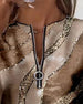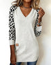 Bluza W Średniej Długości Z Dekoltem W Serek I Leopardzim Nadrukiem