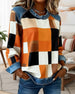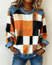 Retro Drukowany Sweter Z Okrągłym Dekoltem
