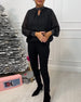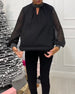 Top z cekinami i okrągłym dekoltem i rękawami typu balon