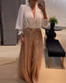 Bluzka Dekolt w Serek Z Cekinami Elegancka