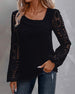 SPECYFIKACJE: Rodzaj Bluzki: Topy Styl: Nieformalny Materiał: Bawełna z domieszką, Koronka Okazja: Na co dzień, Wakacje Dekolt: W serek Wzór: Jednolity Kolor Sleeve Type: Rękaw standardowy Długość rękawa: Długi rękaw Typ sylwetki: Regularny Pora roku: Wiosna, Jesień Detale: Prześwitujące, Koronka Paczka zawiera: 1 x Top TABELA ROZMIARÓW (c...