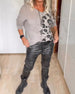 Błyszcząca bluzka z okrągłym dekoltem i rękawami typu dolman