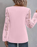 SPECYFIKACJA: Rodzaj Bluzki: Bluzki Styl: Nieformalny, Elegancki Materiał: 94% poliester, 6% spandex Okazja: Na co dzień Wzór: Jednolity Kolor Typ rękawa: Rękaw standardowy Długość rękawa: Długi rękaw Typ sylwetki: Regularny Pora roku: Wiosna, Jesień, Zima Detale: Wydrążone, Koronka Paczka zawiera: 1 x Bluzka TABELA ROZMIARÓW (cm) Rozm...