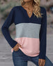 Bluzka z blokami kolorów i dekoltem w kształcie litery V