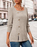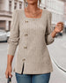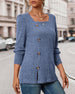 Bluzka w jednolitym kolorze zapinana na guziki z kwadratowym kołnierzykiem