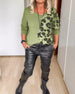 Casualowa bluzka w stylu vintage z dekoltem w kształcie litery V