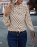 SPECYFIKACJA: Rodzaj Bluzki: Bluzki Styl: Elegancki, Biznesowy Materiał: Bawełna z domieszką Okazja: Na co dzień, Praca Dekolt: Okrągły dekolt Wzór: Nadruk/Wzór Typ rękawa: Rękaw standardowy Długość rękawa: Długi rękaw Typ sylwetki: Regularny Pora roku: Wiosna, Jesień, Zima Detale: Sznurowane Paczka zawiera: 1 x Bluzka TABELA ROZMIARÓW (cm...