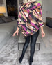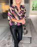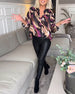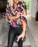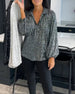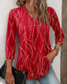 Elegancka bluzka z nadrukiem z guzikami i dekoltem w serek