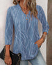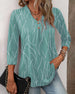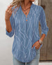 SPECYFIKACJA: Rodzaj Bluzki: Bluzka Styl: Elegancki Materiał: 95% poliester, 5% elastan Okazja: Na co dzień Dekolt: W serek Wzór: Nadruk/Wzór Typ rękawa: Rękaw standardowy Długość rękawa: 7/8 Typ sylwetki: Regularny Pora roku: Wiosna, Jesień, Zima Detale: Guziki Paczka zawiera: 1 x Bluzka TABELA ROZMIARÓW (cm) Rozmiar Biust D...